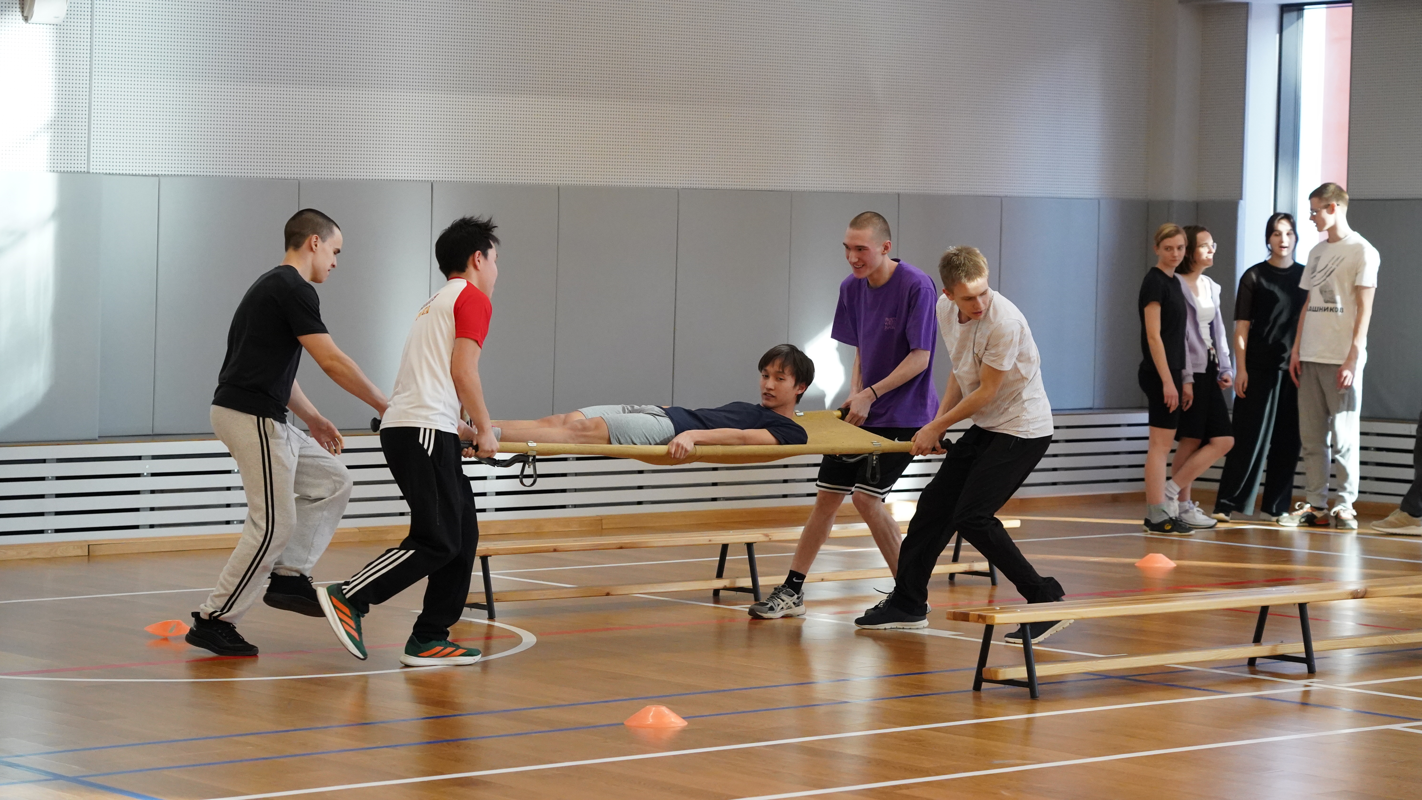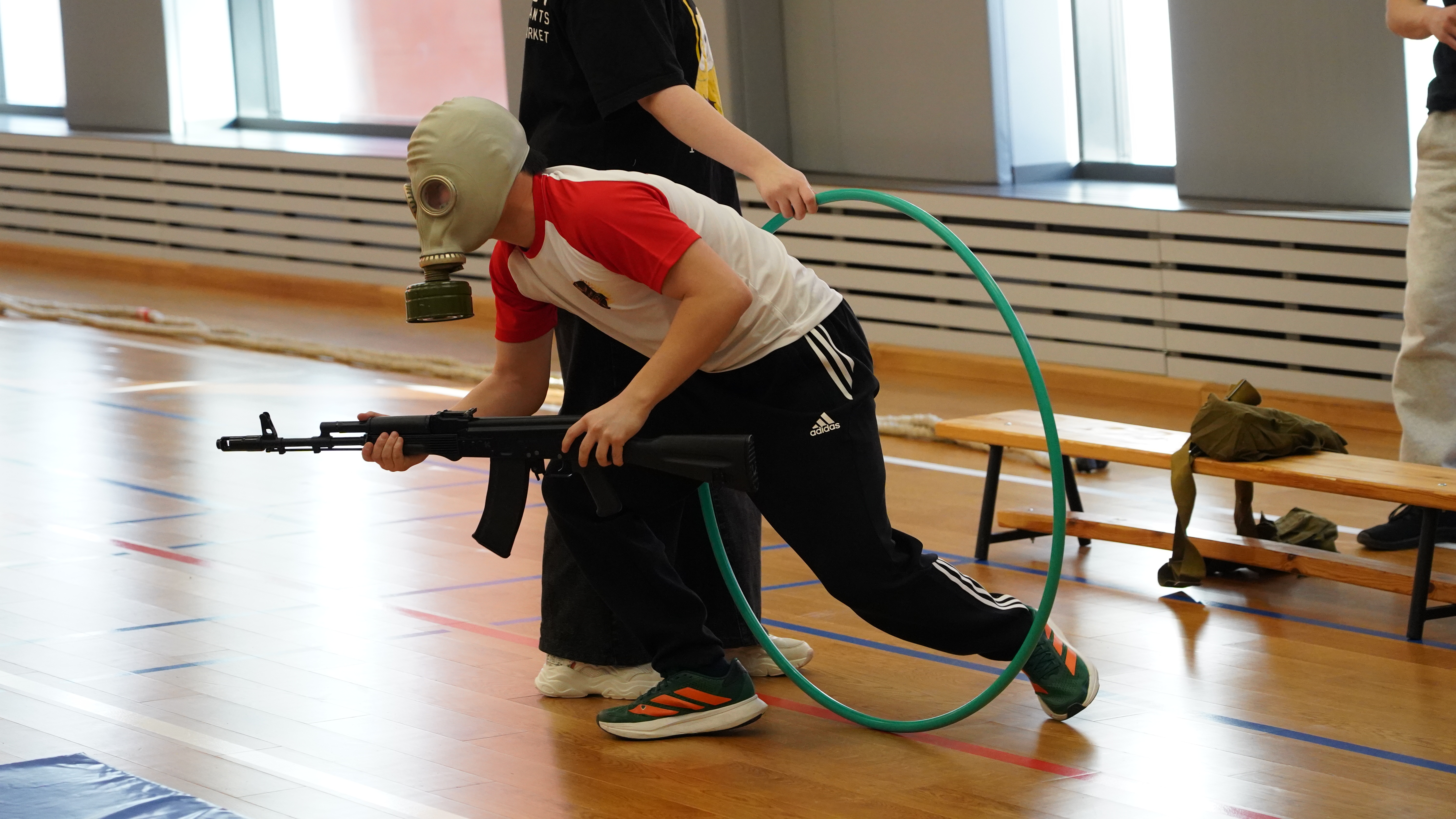 В преддверии Дня защитника Отечества 21 февраля в СУНЦ НГУ состоялась спартакиада, в которой приняли участие и ученики СУНЦ НГУ, и сотрудники школы. Командам предстояло пройти пять станций, каждая из которых предполагала не только физическую выносливость участников, но и теоретические знания. Например, на первой станции спортсменам необходимо было разобрать и собрать автомат на скорость. Также была традиционная полоса препятствий, которую участники пробегали в противогазе и с автоматом в руках. На одной из станций спортсменам предстояло пронести «раненых» товарищей на носилках на скорость. Финальным испытанием стало перетягивание каната.